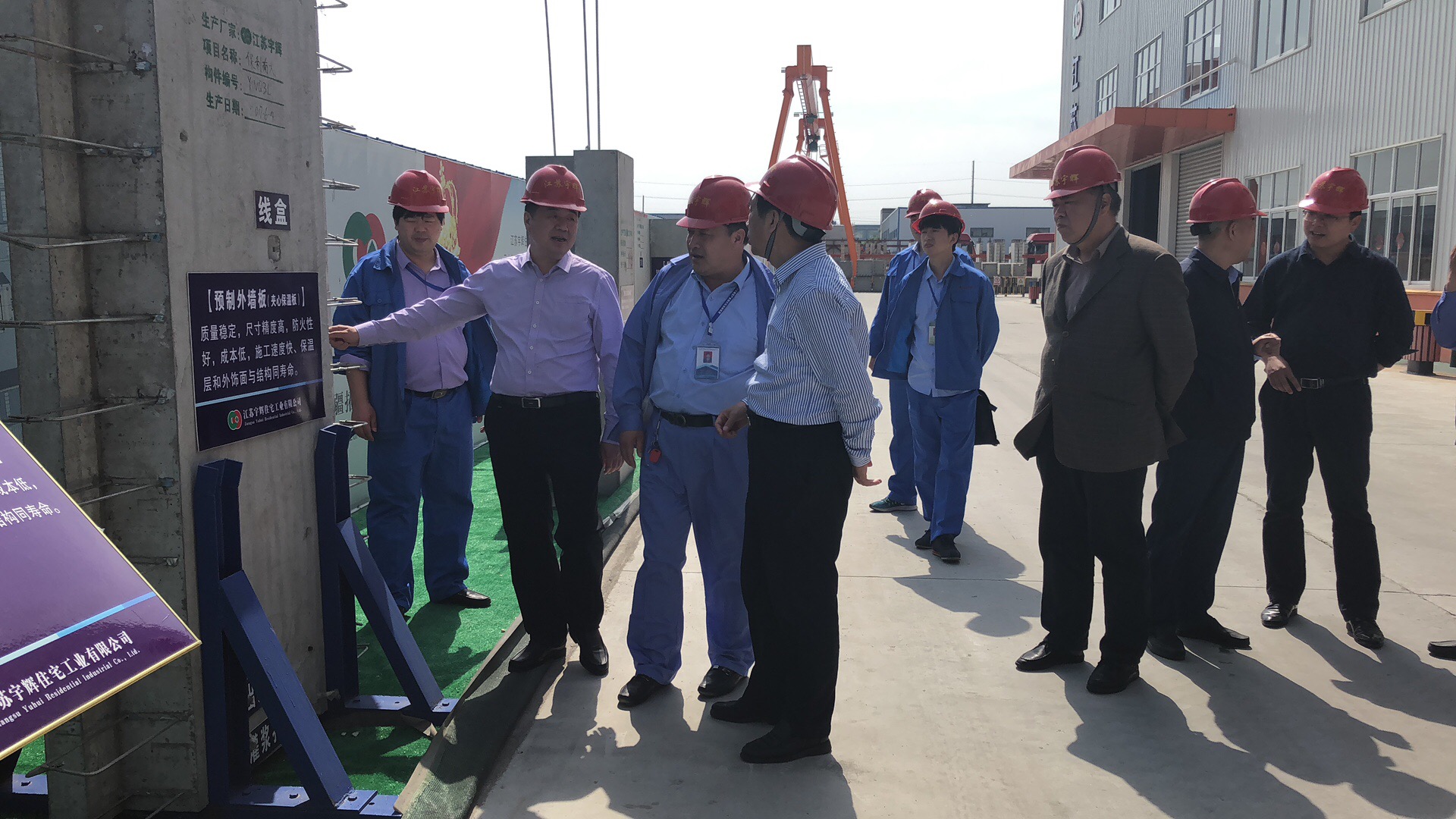 5月10日,省建筑产业现代化创新联盟纪迅会长带队到集团公司调研走访,纪迅会长一行首先到江苏宇辉,实地了解江苏宇辉的运作流程,创新工艺和市场前景,在江苏宇辉生产车间,他对工厂的自动流水生产线,智能化堆放场产生了浓厚的兴趣,详细了解产品的详细参数和工艺流程以及市场应用情况。在泰州市第二人民医院开发区医院,纪会长饶有兴趣的了解了项目装配情况,勉励项目组加强新技术应用,在BIM和创新工艺上多做文章,把项目打造成精品项目、示范项目,为装配式项目树立标杆。