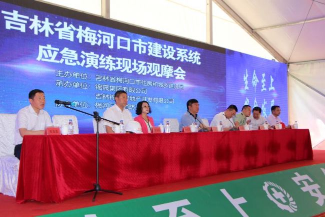 吉林省住房和城乡建设厅安全处副处长孙绍华、吉林省梅河口市住房和城乡建设局陈连发局长、姜春晓副局长、吉林省梅河口市安监局李松岩副局长、吉林省梅河口市消防支队赵明大队长、HJC黄金城平台集团有限公司顾问颜大龙、吉林省房地产开发有限公司常务副总经理田兴明和梅河口市住建局、梅河口市各建设单位及施工单位与监理单位的代表出席了观摩会。