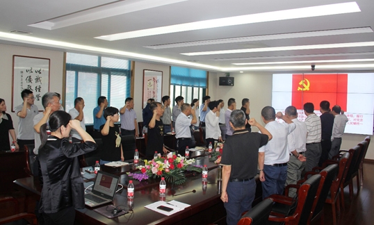 活动中,全体党员重温入党誓词。