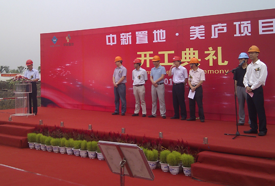 8月16日,集团公司承建的由中新苏州工业园区置地有限公司投资的美庐项目土建一标段工程举行开工典礼,中新公司总裁叶迎君先生以及设计院、监理单位相关人员参加了仪式,集团副总经理刘斌同志代表公司作表态性发言。