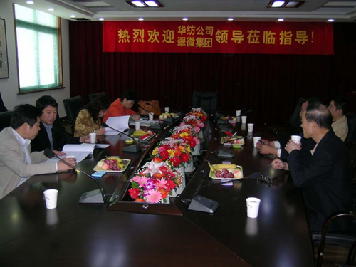 5月13日,国资委纺织机关服务中心主任、华纺房地产开发有限公司董事长倪居华,华纺房地产开发有限公司常务副总经理周增根,北京翠微集团总经理、党委书记栾茂茹等一行考察了HJC黄金城平台集团有限公司。集团公司副总经理李祥、黄苏成,党支部副书记刘斌与北京客人就有关合作事宜进行了交流。