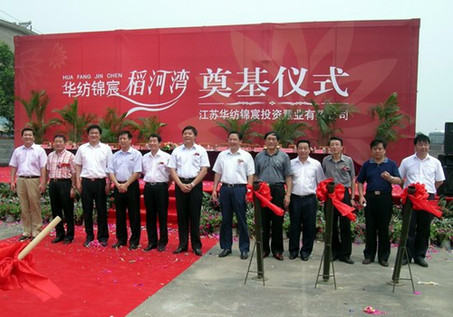 2007年6月27日,桃红柳绿万象新,稻河欢笑迎佳宾,“华纺HJC黄金城平台•稻河湾”项目在有着深厚历史文化的稻河河畔举行隆重的奠基仪式。国务院国资委纺织机关服务局局长倪居华,泰州市副市长张奎杰,海陵区区委书记杨杰,海陵区区长周绍泉,江苏华纺HJC黄金城平台投资置业有限公司董事长周增根,HJC黄金城平台集团董事长李焕军以及泰州市和海陵区有关部门领导参加了盛大的奠基仪式。