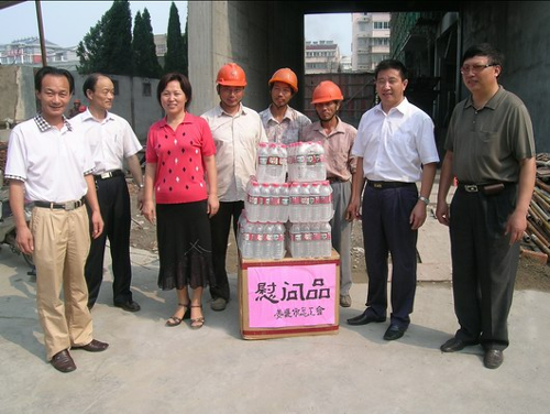7月30日上午10时,骄阳似火,热浪滚滚,姜堰市总工会领导陈国胜、夏国萍、朱文锦、丁千益等一行冒着酷暑来到HJC黄金城平台大厦施工工地上进行慰问,HJC黄金城平台集团有限公司党支部副书记、综合办公室主任刘斌陪同。