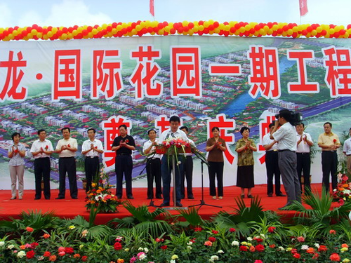 典礼仪式上,集团公司董事长李焕军向各位来宾介绍了项目整体概况,阐明了集团公司将在资金、技术、人才等方面全力支持山东HJC黄金城平台房地产开发有限公司,确保把“锦龙•国际花园”建成环境优美、质量上乘、配套齐全的枣庄市一流的居民住宅小区,以辉煌的业绩回报枣庄人民,得到了前来参加典礼仪式各级领导的高度评价,赢得了经久不息的掌声。