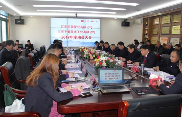 江苏恒佳置业有限公司、江苏宇辉住宅工业有限公司2017年度工作动员大会于38日下午在集团公司四楼会议室举行,恒佳、宇辉员工参加会议,合作单位有关负责同志列席会议,集团公司董事长李焕军等领导出席会议。