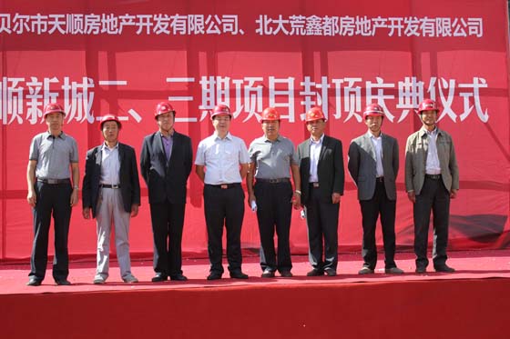 826,集团公司承建的天顺新城二、三期工程正式封顶。呼伦贝尔市市委、海拉尔区区委及市有关部门领导,天顺集团、北大荒集团、北大荒鑫都地产主要领导,集团公司董事长李焕军出席封顶仪式。